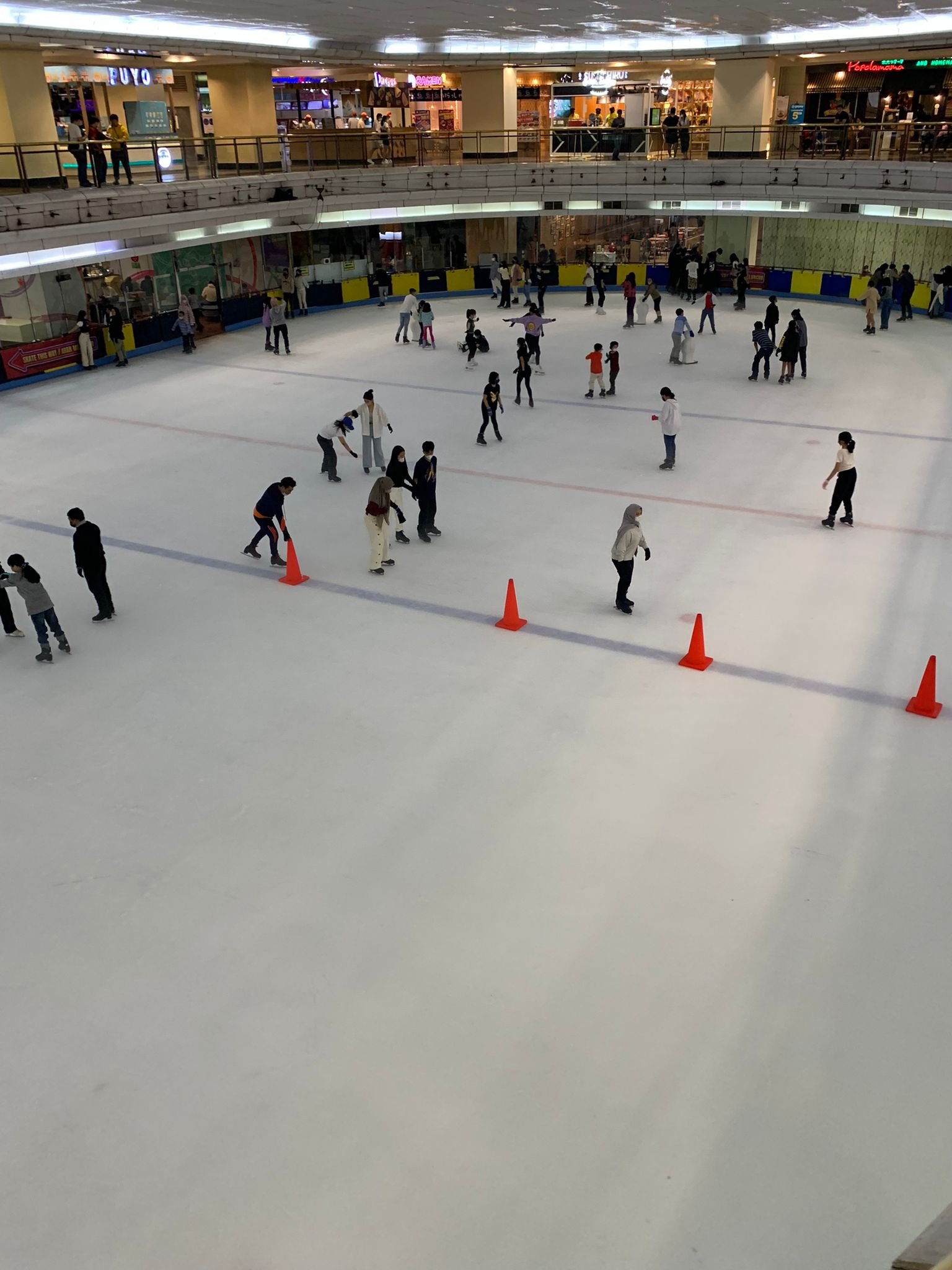 Om 9.30 bereiken we Taman Anggrek (Orchideeëntuin) in het noordwesten van Jakarta. Je rijdt er ook langs als je vanuit de luchthaven naar het centrum van Jakarta gaat. Deze mall is te herkennen aan de enorme woontorens die uit het dak steken (probeer ze eens te tellen) en het enorme LCD- scherm aan de voorgevel. Rond bedtijd gaat dat scherm gelukkig wel op zwart want als buurtbewoner zou je met 24 uur per dag licht het gevoel hebben dat je in de poolcirkel woont. Qua oppervlakte is Taman Anggrek misschien wel de grootste shoppingmall van Jakarta. Met een oppervlakte van 360.000 vierkante meter, verdeeld over 7 verdiepingen met meer dan 400 winkelunits en een ijsbaan. Het is gebouwd als prestigeproject van de overheid om de wereld te tonen dat Indonesië klaar was om een van de grootste economieën in de wereld te worden. Hiervoor zijn zelfs wetten gewijzigd waardoor het voor projectontwikkelaars mogelijk was om groter en vooral hoger te bouwen. (Tan, 2022). Helaas staat ook hier 40% van de ruimte leeg, als je door de enorme hoofdingang het gebouw binnenkomt, en naar rechts kijkt, dan staar je in een grote donkere leegte.